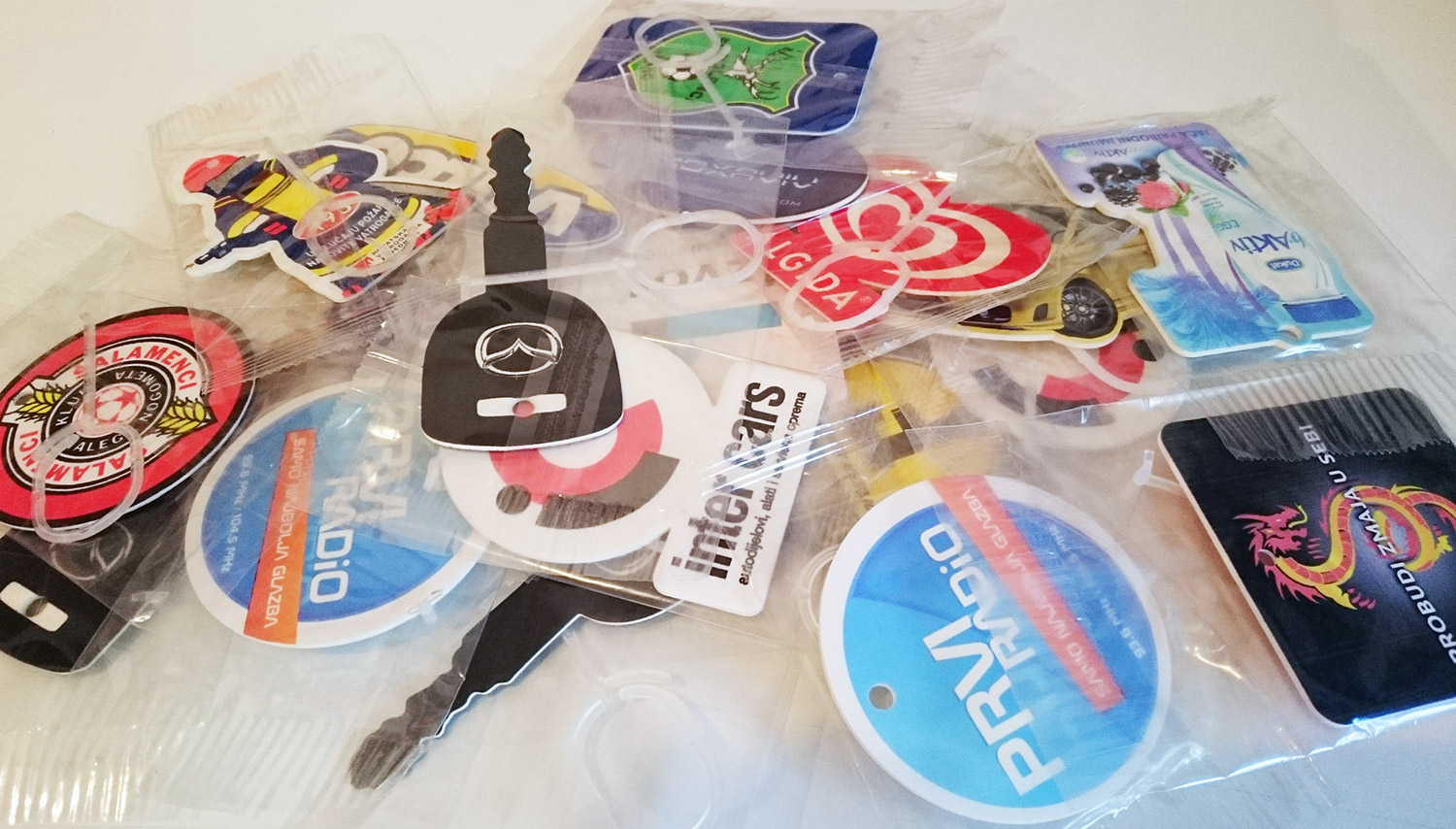 Tisak na majice, dresove, auto mirise, zahvalnice, kišobrane, upaljače, rokovnike, kemijske, torbe, ruksake, naljepnice, vezice za akreditacije..